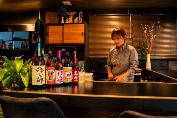 酒蔵の関係者も足しげく通うという同店では、地元の鹿児島酒造 黒瀬杜氏伝承蔵や大石酒造の焼酎を中心に、阿久根ゆかりの銘柄を豊富にラインナップしています。