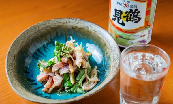 薬味たっぷりの鳥刺しのなめろうには、芋の甘みと香ばしさが広がる「鶴見」をお湯割りで。ぷりっとした歯ごたえが魅力の水イカを使ったいかげそ明太には、サツマイモの中でも特に甘みが強いとされる紅さつまを使った「やきいも黒瀬 紅」をロックで合わせます。上品な香りと甘さが、しっかりとした味付けのいかげそ明太と相性抜群です。