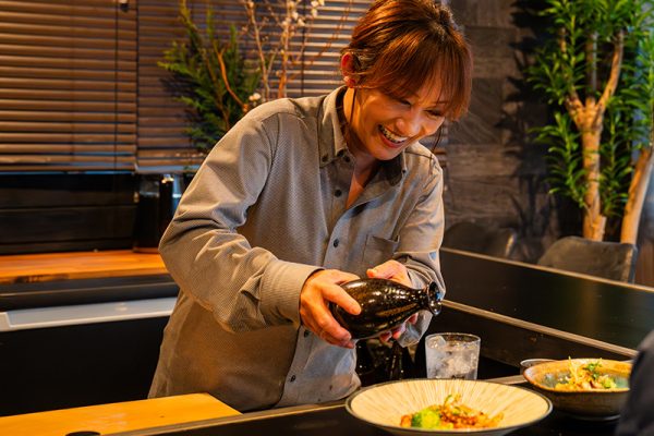 また、料理をしながら自然と会話が生まれるオープンキッチンも、この店ならではの特徴。「お客さんと会話しながら、一緒に飲みたくて」と話す店主の窪田あつ子さん。その言葉どおり、カウンター越しのやりとりが、初めて訪れる人の緊張もふっとほどいてくれます。